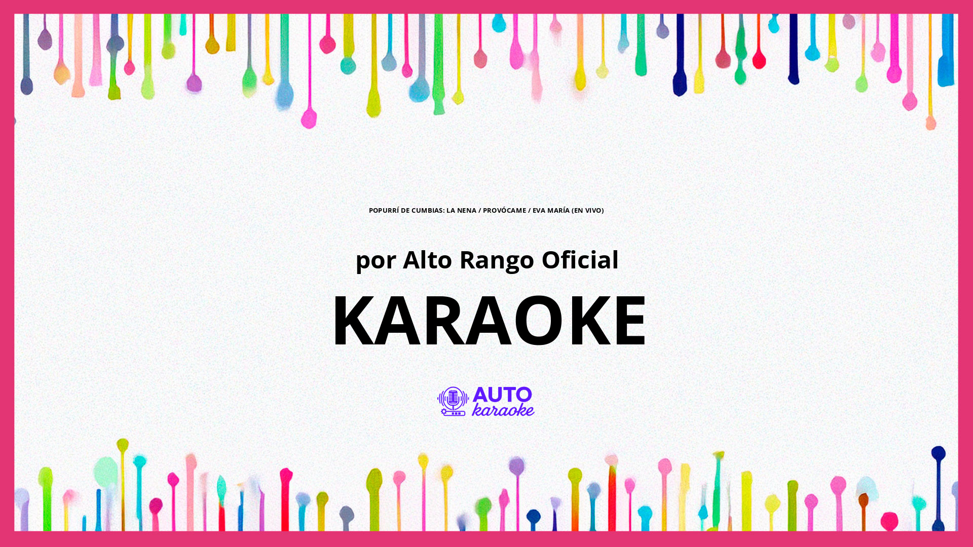 Disfruta de este karaoke de “Popurrí de Cumbias: La Nena / Provócame / Eva María (En Vivo)” interpretado por Alto Rango Oficial. Si eres fanático de la música tropical y te encanta cantar, este video es perfecto para ti. Siente la energía y la alegría de estas cumbias clásicas mientras sigues la letra en la pantalla. ¡Da rienda suelta a tu pasión por el karaoke y diviértete cantando junto a Alto Rango Oficial!